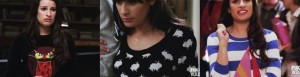 FOX’s hit dramedy musical show Glee is well known for it’s musical numbers. But next time you watch (Tuesdays at 8), take a look at the awesome fashion! One of the fashionistas on the show is…(it may surprise you…) Rachel Berry, played by Lea Michele.